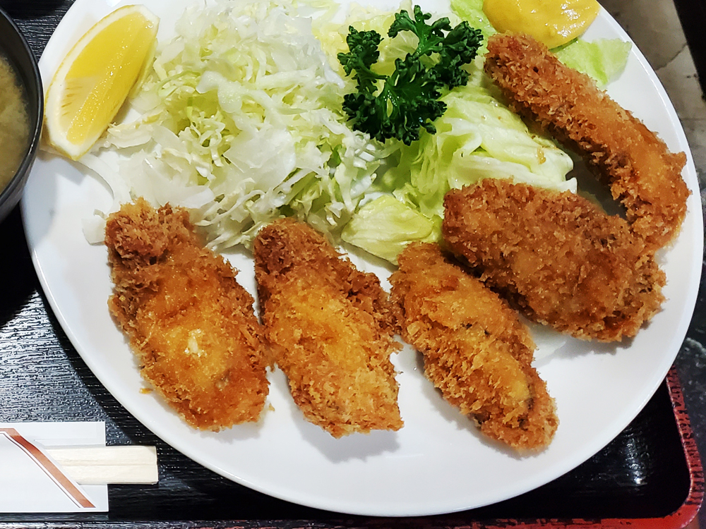 私もカキフライをひとつ分けてもらって食べると、表面がカリッとして、中は柔らかくてとてもジューシーでした。