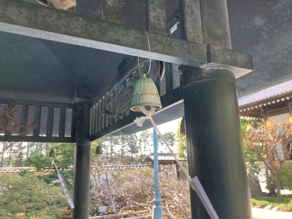 院内にいるとなにやら音がしてきます。見わたすといたるところに鉄鈴がぶら下がっていました。