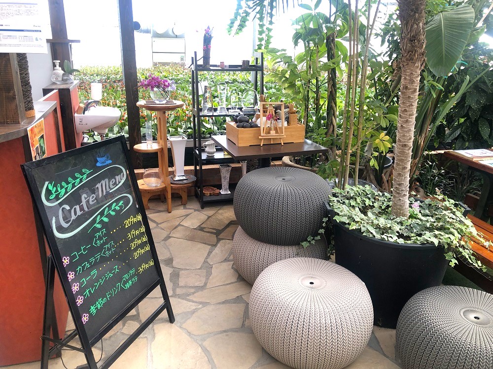 店内には、まるでおしゃれなカフェにいるかのような、ステキな雰囲気のコーナーもありました。胡蝶蘭選びに迷ったら、こちらで休憩しながらスタッフの方にアドバイスをもらうのもいいですね。