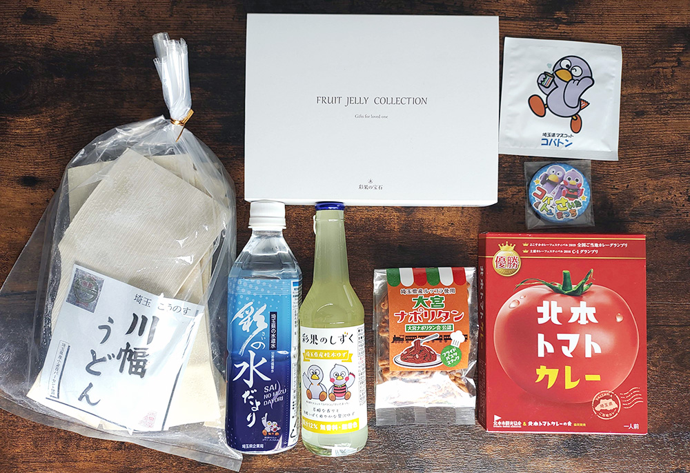 そのほかにも、埼玉県の水道水をペットボトルにした「彩の水だより」、北本市のブランド農産物である北本トマトを使用した「北本トマトカレー」、大宮名物のひとつ「大宮ナポリタン」の味付けのフライドパスタスナックなどを購入。大宮ナポリタンのパスタは以前食べておいしかったのでリピート購入です!